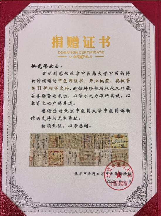 多年来博物馆针对民国和建国初期中医学校毕业证书、中医师开业执照、中医师证书及教材、杂志等广泛征集,同时在博物馆四楼中国医学史展厅设有证书内容专题展览,此次捐赠进一步充实了我馆证书类文物的馆藏,也是对我馆中国医学史近现代部分馆藏文物的有效补充,对于了解当代中医学的发展具有启示意义。