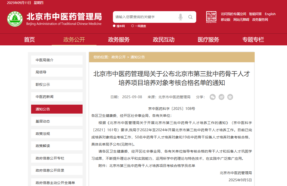 北京市第三批中药骨干人才培养项目是北京市中医管理局于2022年展开的高级中药人才培养项目,目的是整理继承北京市中药专家的学术经验和技术专长,培养一批热爱中医药事业、中医药理论功底扎实、中药实践经验丰富、中药技能精湛、具有一定中药科研能力的优秀中药人才。