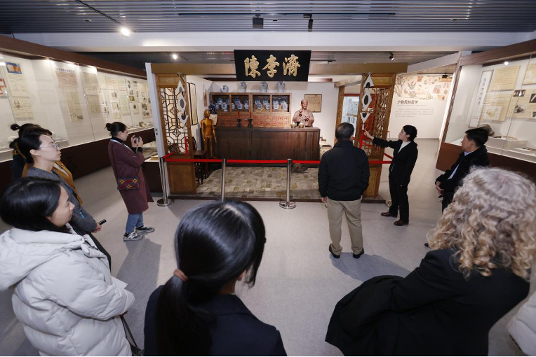 随后,在学校中医国际传播协会学生志愿者的引导下,嘉宾们在百草堂了解中药药性的独特性,在造药局感受炮制技艺的精妙,在针推阁认识人体经络循行,在功夫阁体验传统养生术八段锦与五禽戏,在九体堂了解体质学说,在养心斋体验中国传统琴棋书画的魅力,感受中医养生方式和药食同源的理念,在时药阁了解中药的传承与创新发展。嘉宾们边参观,边体验,边记录,在轻松的氛围中感受中医药的全方位魅力,并逐步认识到中医药在健康养护与疾病预防中的核心作用。