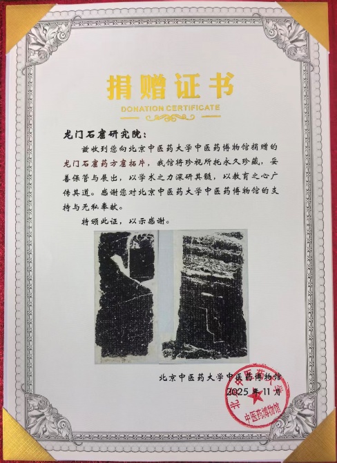 在2025年11月这个秋意深浓的季节,我馆迎来了一份承载着千年石刻艺术与古代医药智慧的特殊礼物。龙门石窟研究院将一份精心拓制的龙门石窟药方洞拓片,郑重捐赠给我馆,为我馆中医药医方碑拓历史研究与文化交流注入了新的活力。