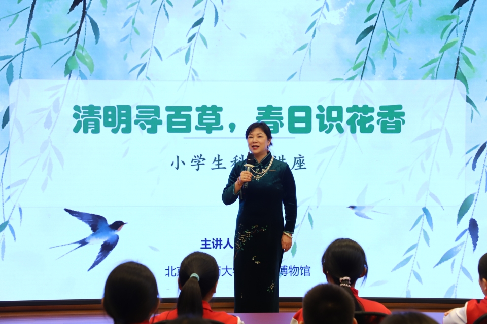 为深化清明节传统文化教育,引导学生感知春日自然之美,3 月 30 日下午,东城区体育馆路小学特邀我馆具有丰富青少年科普经验的潘老师,开展以《清明寻百草,春日识花香》为主题的科普讲座,为全校师生带来一场融合传统文化与自然科学的特色课堂。