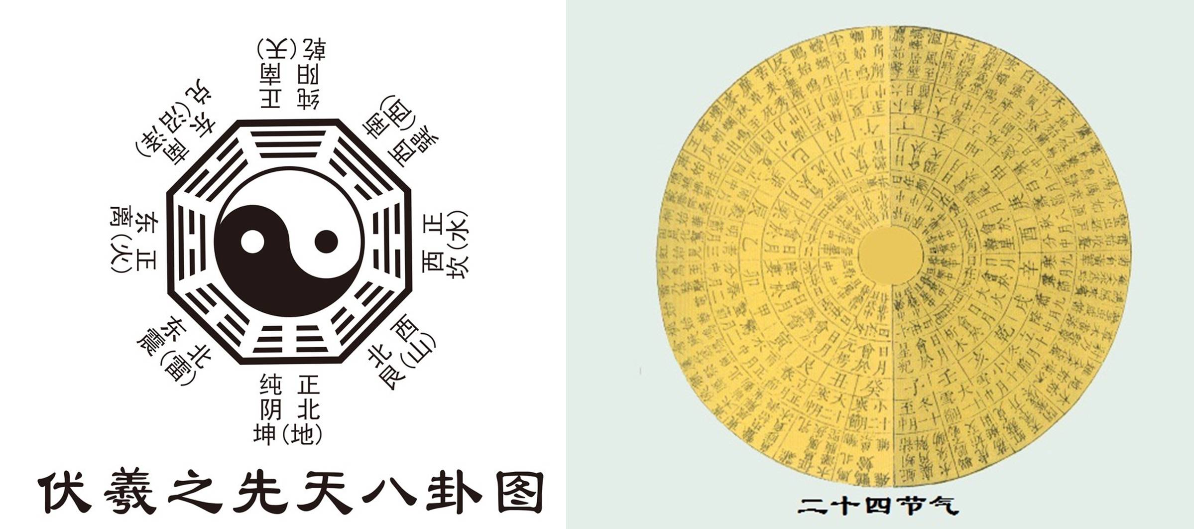 早在7000多年前的远古时期,伏羲就将天文、气象信息溶入到八卦符号之中,以八卦符号传播天气预报信息。伏羲时代尚未进入农业社会,人们以打渔捕猎为生,所以最怕的就是天气骤变,天气不好就会影响出行和生活,尤其是突如其来的电闪雷鸣,风狂雨急的天气,严重影响着人们赖以维持生存的渔猎活动,所以“雷”、“电”这种大自然的震撼力量无疑在原始先民的心中烙印上了最强烈、最普遍的恐惧心理,于是,预知天气变化情况进而“避凶趋吉”便成为社会的普遍需求。伏羲氏依龙马之图画出了乾、兑、离、震、巽、坎、艮、坤为内容的卦图,后人称为伏羲八卦图。用阴阳八卦来解释天地万物的演化规律,并以八卦符号对应八个方位和二十四节气中最主要的八个节气。他开始做天气预报时大家都还将信将疑,后来通过实践检验发现他预报的天气很准,这样一传十,十传百,伏羲感到应接不暇时,就在一棵树上挂起一个牌子,用八卦符号告诉百姓天气变化情况。