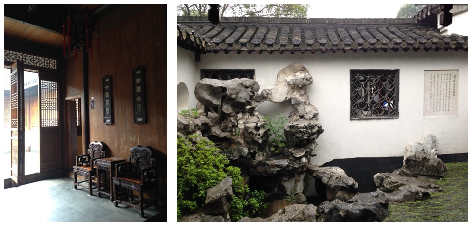建筑居室的色彩注重与自然环境的和谐,使建筑及其所处的自然景观共同构成一幅美好的画卷。北方地区气候寒冷,冬季万物凋零,因此北方的建筑色彩较为浓烈鲜艳,多用暖色,红柱黄瓦,为周围自然环境增添了几分活泼的色彩。而南方地区气候温暖湿润,植被茂盛,绿树成荫,繁花竞放,建筑就更多采用粉墙青瓦,素净柔和的冷色调给人凉爽淡雅之感,与色彩丰富的自然景色相得益彰。不仅是建筑外部的颜色,居室内部的色彩也有讲究。中国传统建筑的居室内很少大面积使用鲜艳的颜色,因为古人认为,“凡视五色,皆损目,惟黑色于目无损”,因此室内的屏风、帷幕等多用黑色,“皆用皂罗屏风,所以养目也”,皂罗是一种黑色的丝织品,于黑色的底色上点缀以亮色的纹饰图案,别有一种雅致的文人气息,其功能也不仅止于养目,更可怡情畅怀。