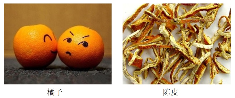 陈皮:为芸香科植物橘及其栽培变种的干燥成熟果皮。柑果采摘后先是剥皮,晾干,需阴凉干燥处储藏。且收藏了3年以上的才可称为陈皮。性温,味辛、味苦。入脾经、胃经、肺经。理气健脾,调中,燥湿,化痰。主治脾胃气滞之脘腹胀满或疼痛、消化不良。用于胸脘胀满,食少吐泻,咳嗽痰多。