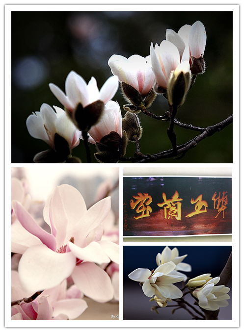 在北方,最早迎接春天的花儿不是迎春花,也不是杏花、桃花,而是玉兰花。在春寒料峭的早春三月,当大地刚刚苏醒,柳树和杨树刚要开始萌生出嫩嫩的绿芽儿时,玉兰树的花蕾便渐渐地膨胀起来。春风一吹,白色、粉色、紫红色的花芽儿,就迫不及待的从一棵棵树枝上钻出来,抢在绿叶前早早地展示她美丽的容颜。因其花“色白微碧,香味似兰”,故称玉兰。玉兰花莹洁清丽、柔媚淡雅的丰采让很多文人墨客为之动容,所以有“绰约新妆玉有辉,素娥千队雪成围”、“翠条多力引风长,点破银花玉雪香”等美丽诗句,已故著名画家齐白石先生也留下了“双玉兰堂”的珍贵墨宝。