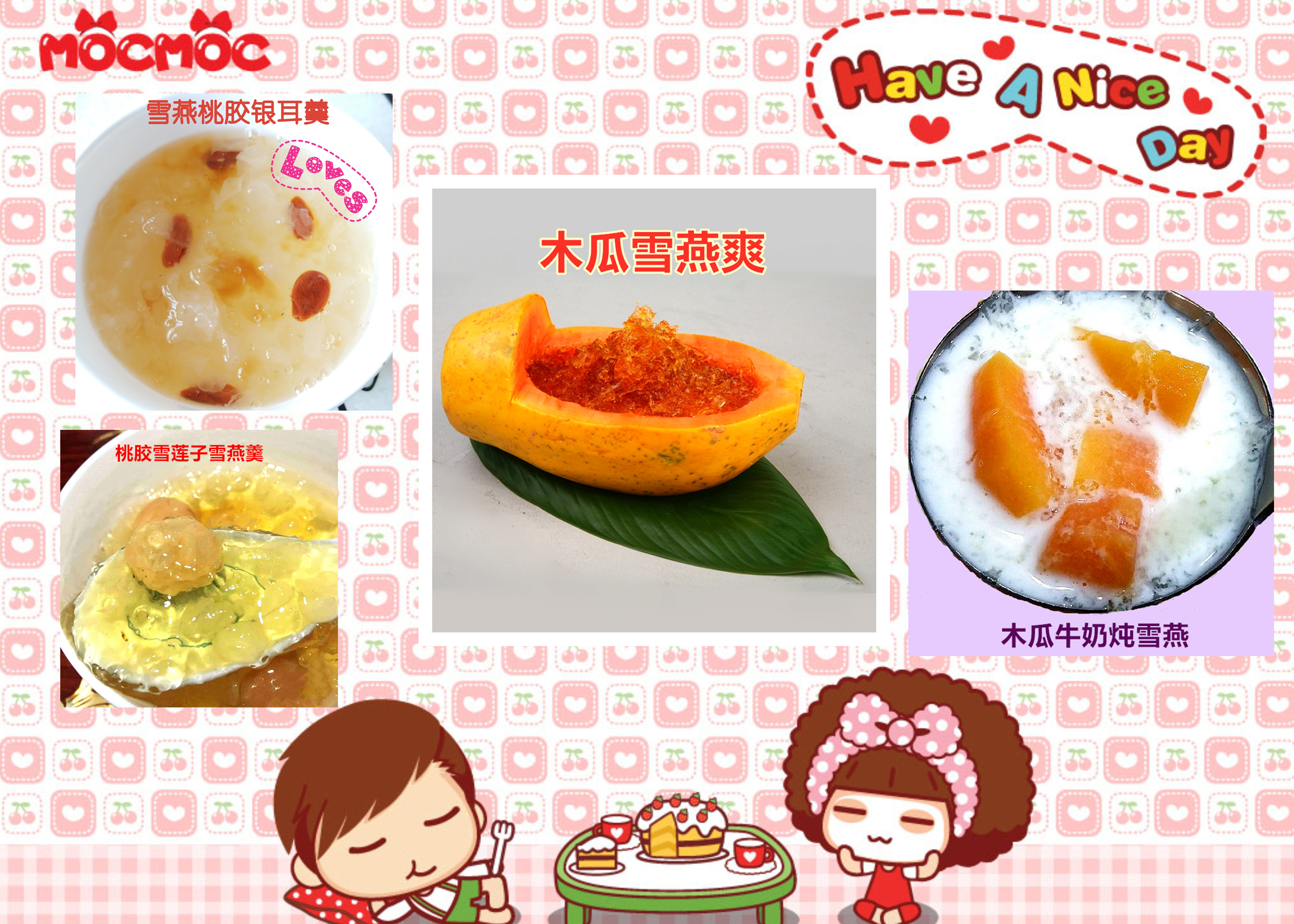 木瓜雪燕爽(夏季特饮):将雪燕提前一天泡发洗净,加冰糖熬煮30分钟后,放凉后与刨冰、木瓜肉混合,放入半个木瓜盅内即可。
